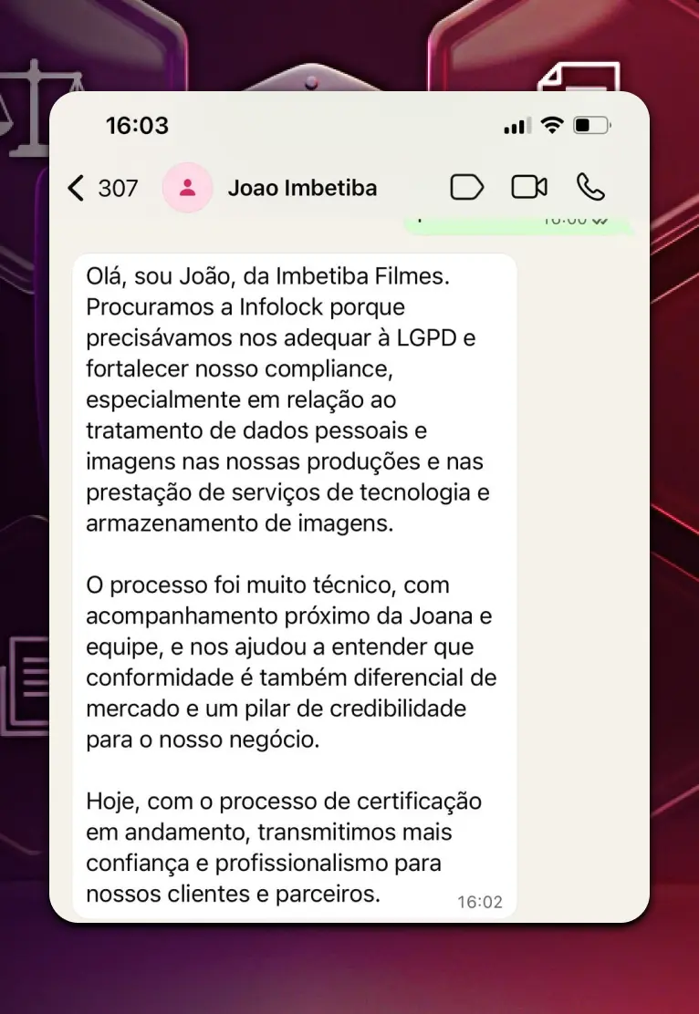 Joana criou a Infolock para transformar conformidade em vantagem comercial real.